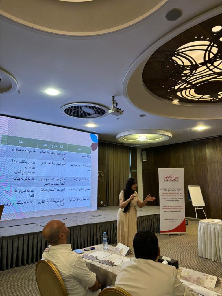تضمن البرنامج جلسات تدريبية تفاعلية حول أساسيات الإدارة المالية وإجراءات التعاقد والصرف, الإجراءات الإدارية للنشاطات والسفر والمشتريات, إعداد الميزانيات والتقارير المالية السنوية وفق معايير الشفافية.